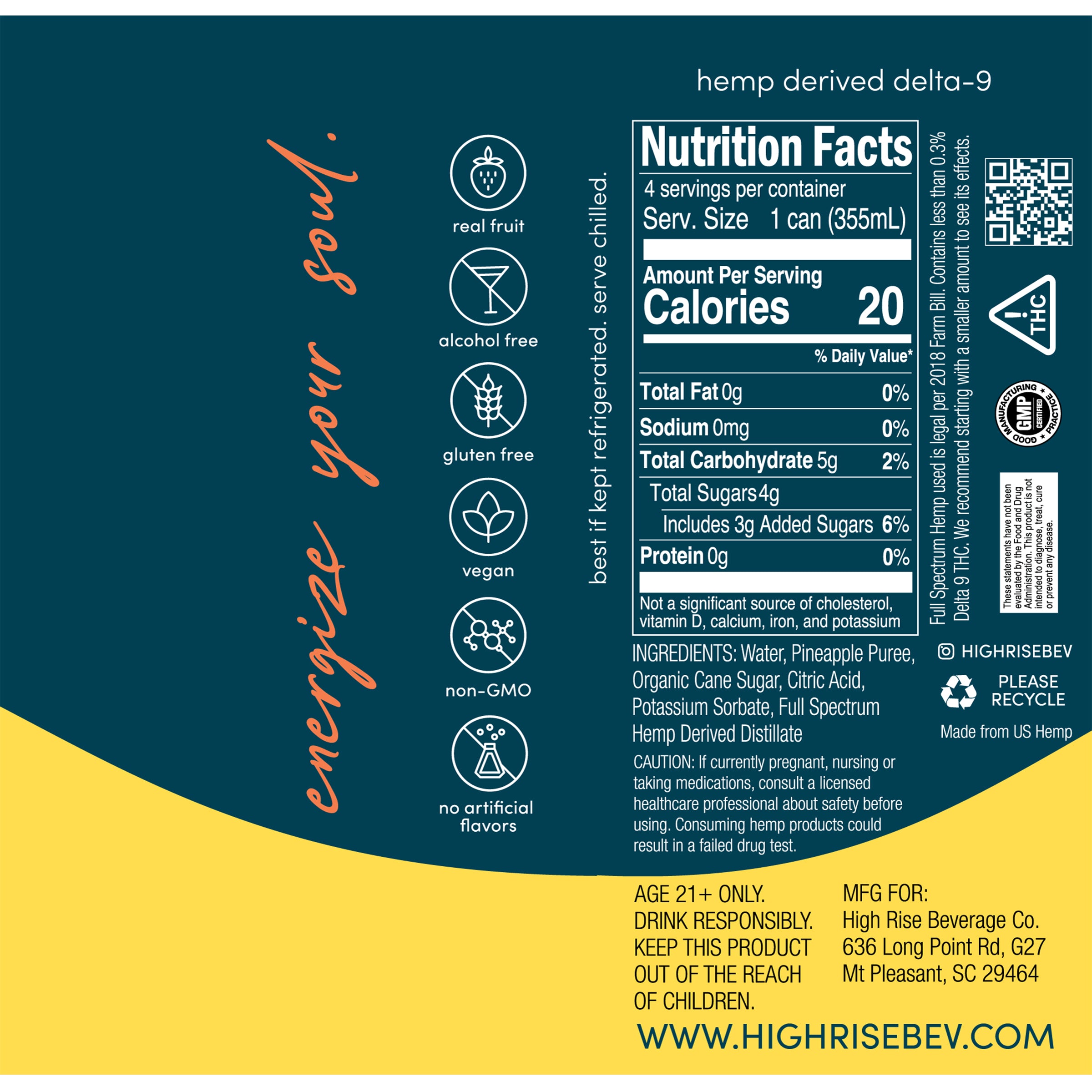 I love the pineapple High Rise, it tastes amazing! The only reason I gave it 4 starts was because I wasn’t expecting the clumps of pineapple at the bottom of the can. Don’t get me wrong they tasted great just an unexpected surprise! Absolutely will be ordering again!